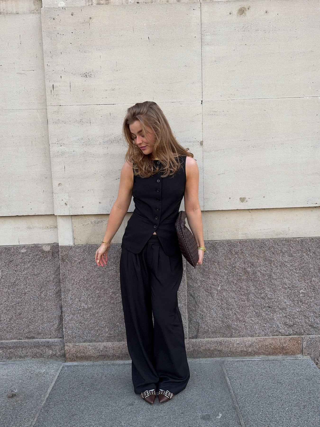 These pants are for those who love a relaxed and stylish look. They have a wide, baggy fit with pleats at the front for a flattering drape and plenty of freedom of movement. The waist is comfortable and can easily be styled high or low, depending on the look you're going for.