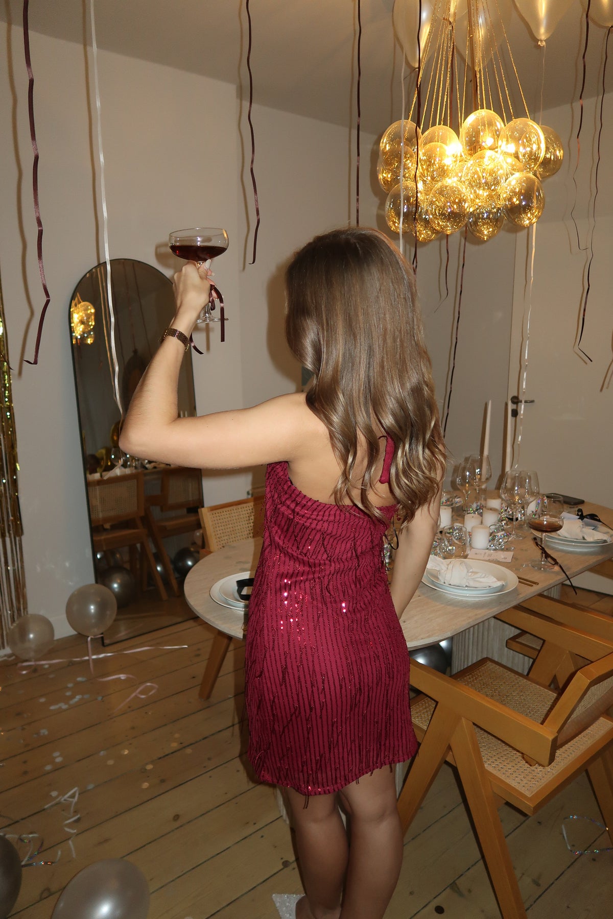 Discover the ultimate New Year's dress that combines sparkle with elegance! This red dress is covered in sparkling sequins for a radiant look that catches the light from all angles - perfect for celebrating the New Year or any other festive occasion.