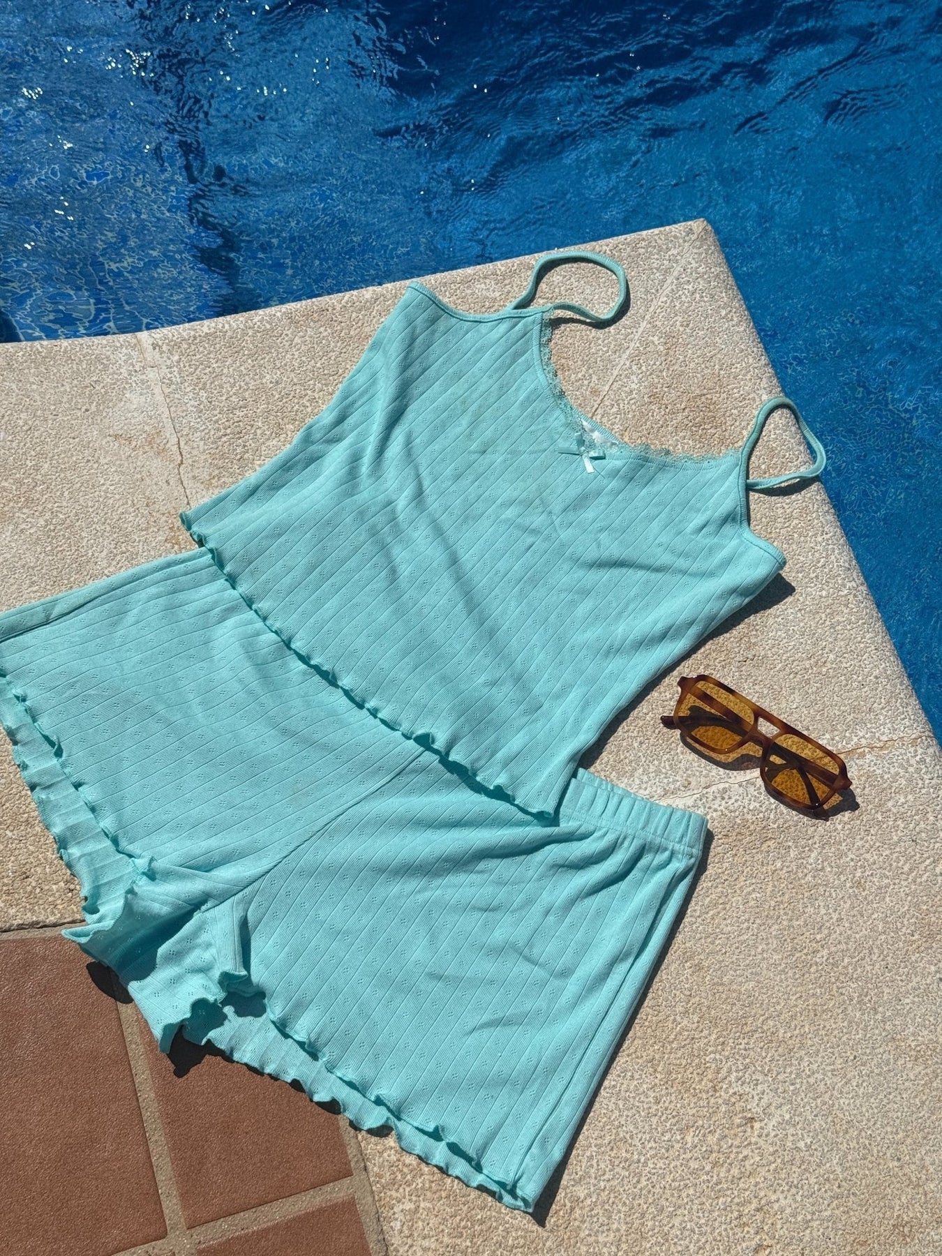 The ruffle hem adds a cute and feminine touch and the fine fabric pattern makes them just that extra bit cozy. Wear them with a matching top or a loose tee - these shorts will quickly become a wardrobe favorite!
