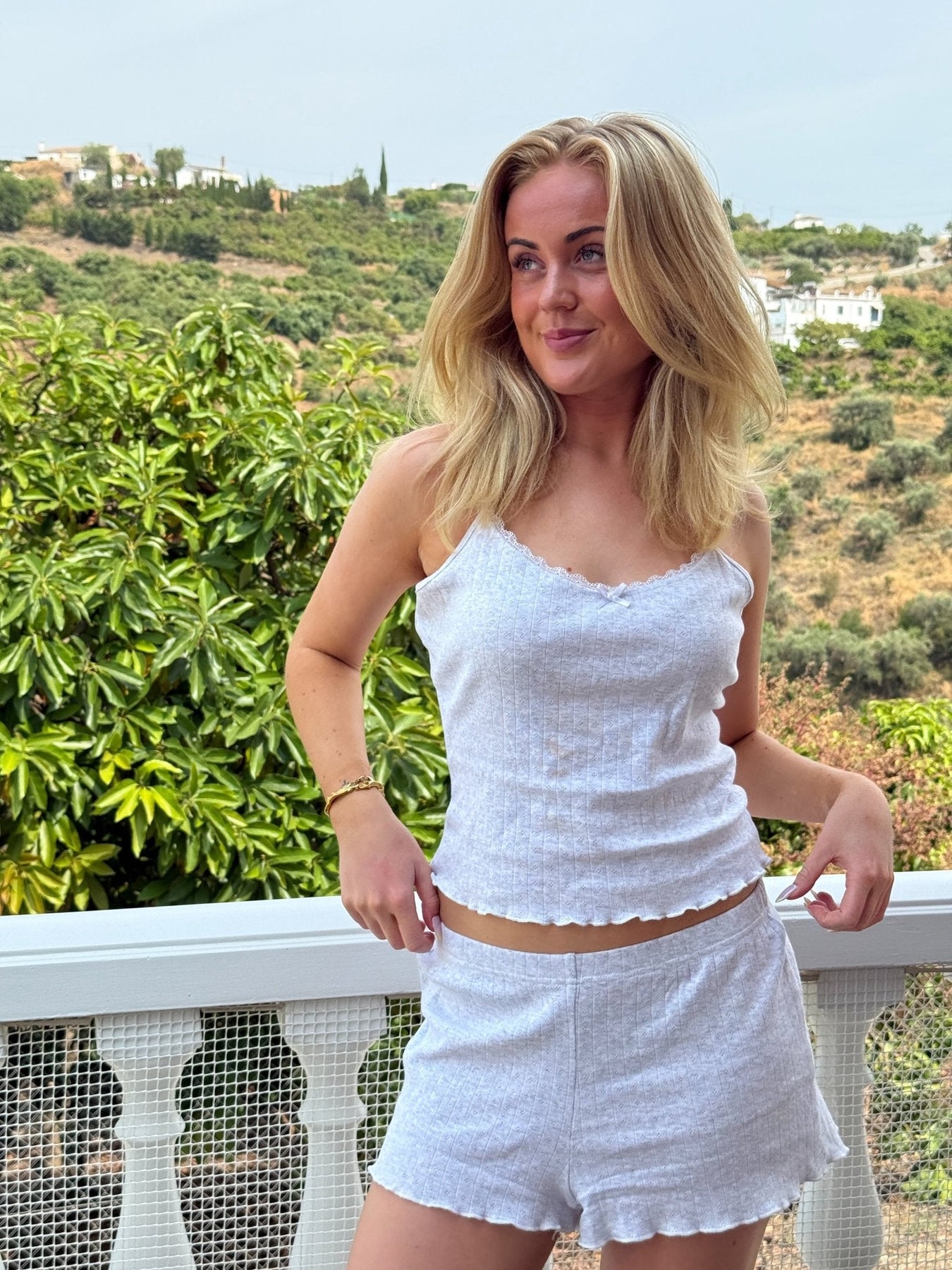 The ruffle hem adds a cute and feminine touch and the fine fabric pattern makes them just that extra bit cozy. Wear them with a matching top or a loose tee - these shorts will quickly become a wardrobe favorite!