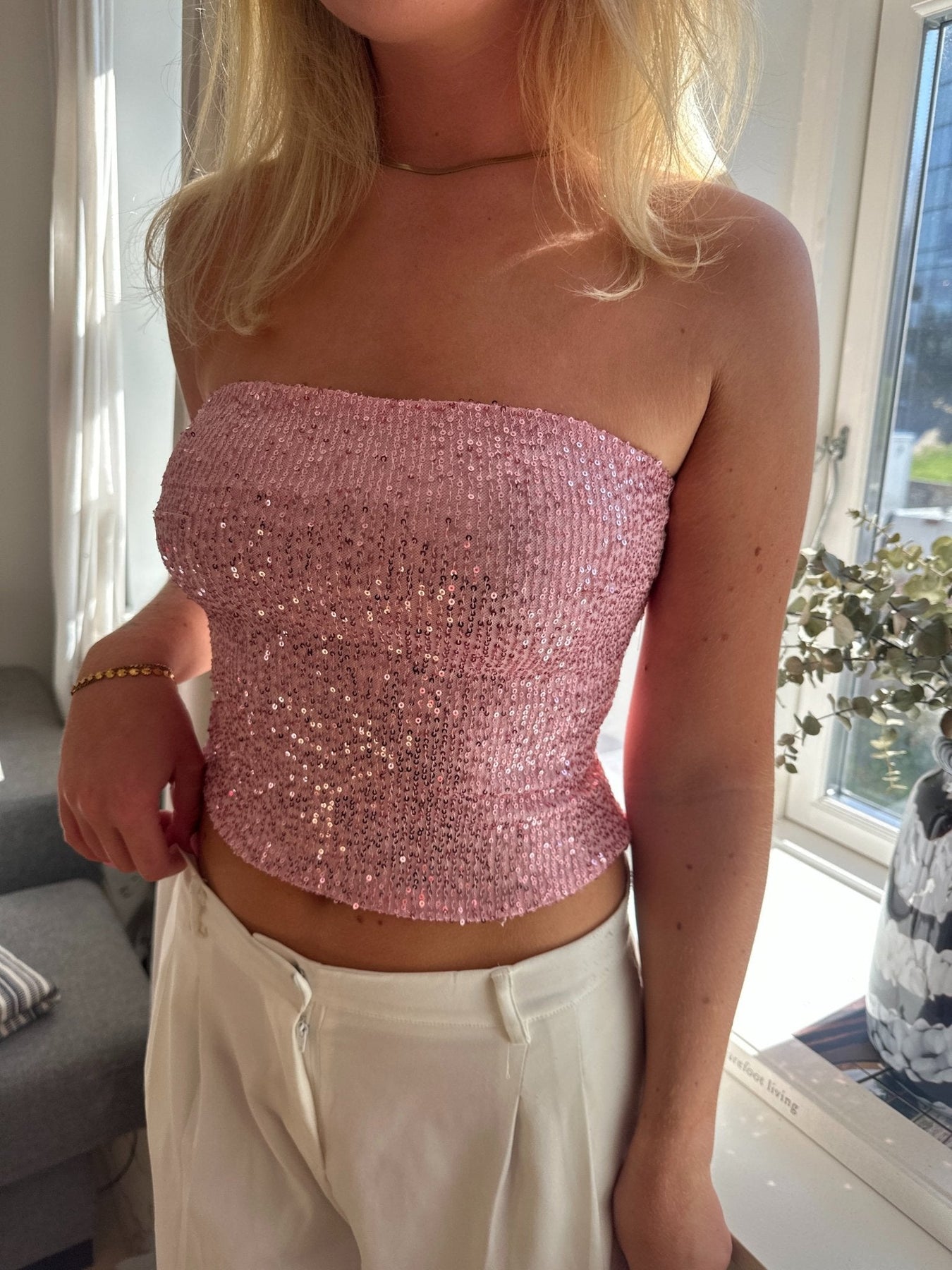 Complete your New Year's look with this stunning pink glitter top covered in tons of sparkling sequins! It catches the light and makes you shine wherever you go. Perfect for dancing the night away - or just getting attention in the best way!