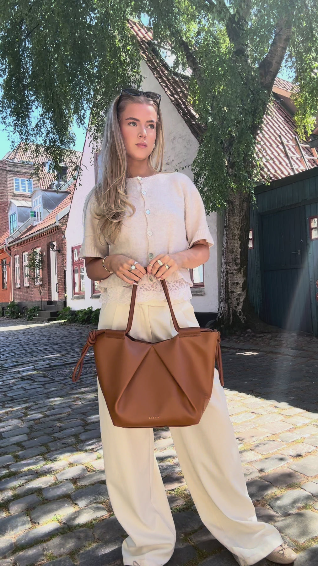 The Celina Bag is the perfect everyday bag as it can hold a computer and all your other everyday essentials. The bag closes at the top with a button and has one large compartment. The bag has a timeless design and has the finest elegant details in the form of knots on the sides and a fold on both front and back.