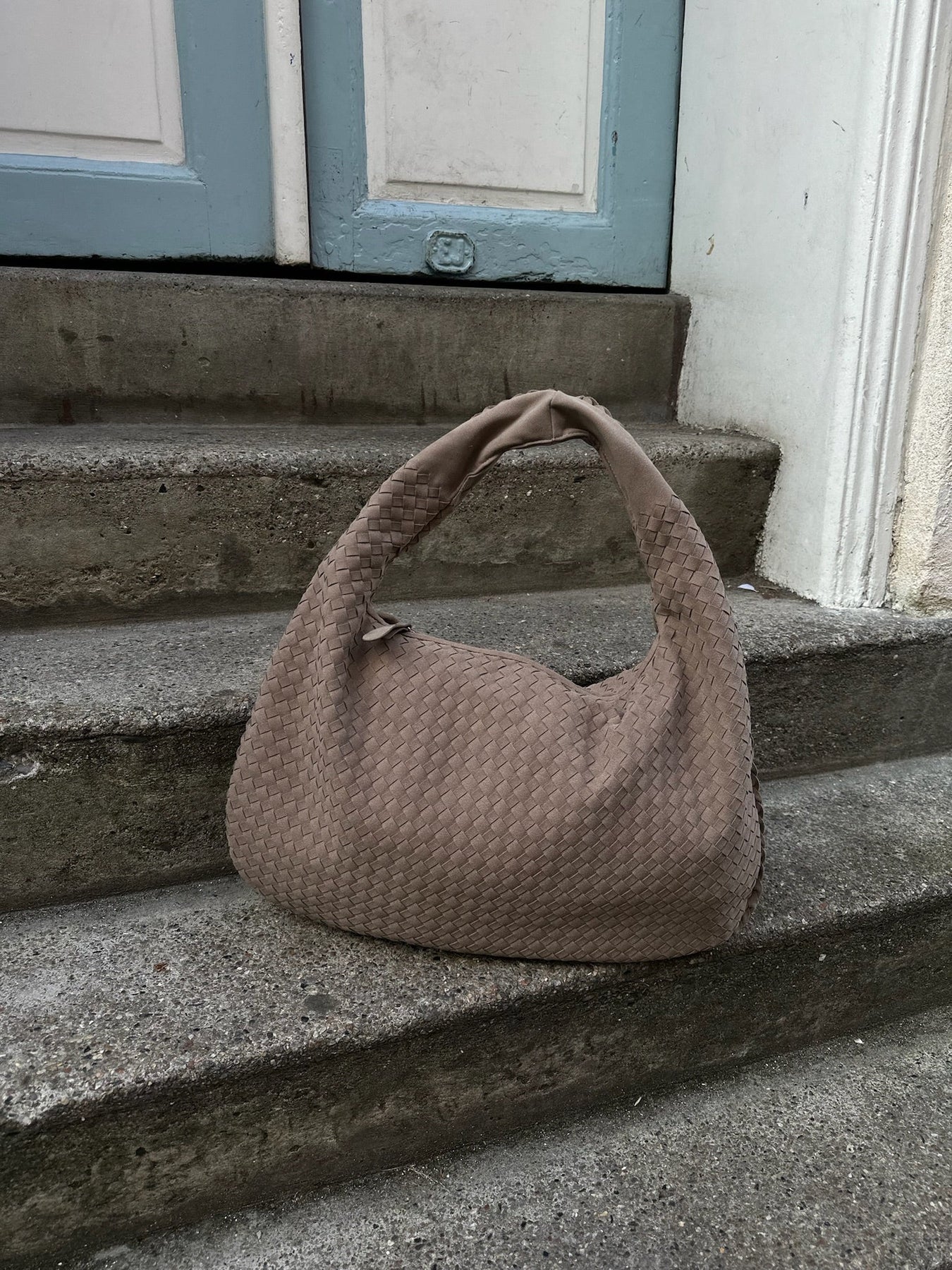 Vores smukke Charlotte Bag er en flettet skuldertaske. Tasken har et stort rum i midten med en lynlåslomme. Inde i tasken er to mindre rum med lynlås, og en stor åben lomme.
