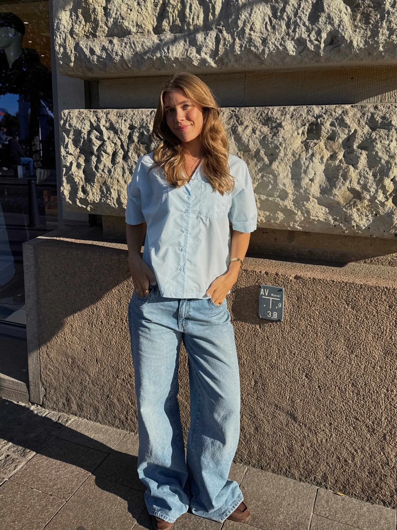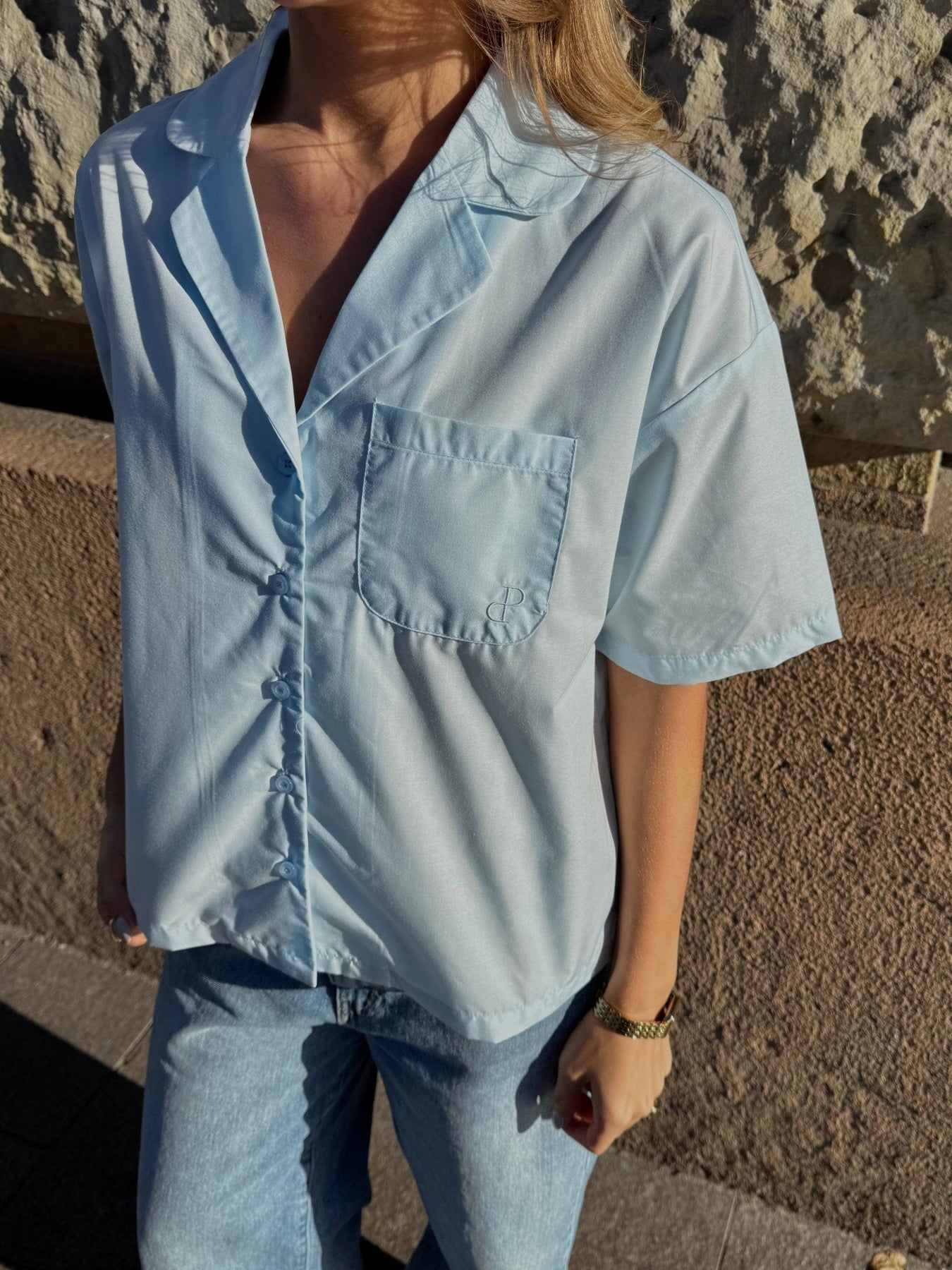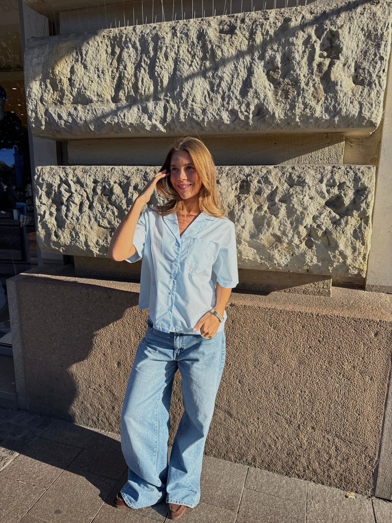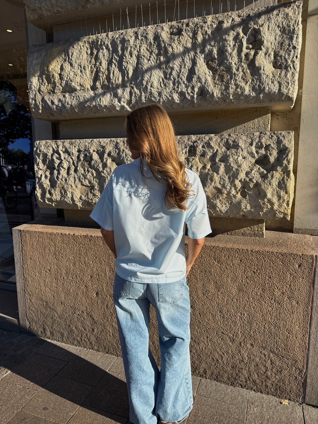 This light blue short-sleeved shirt is light, airy and super stylish. It has a classic and relaxed fit that makes it perfect for warm days.