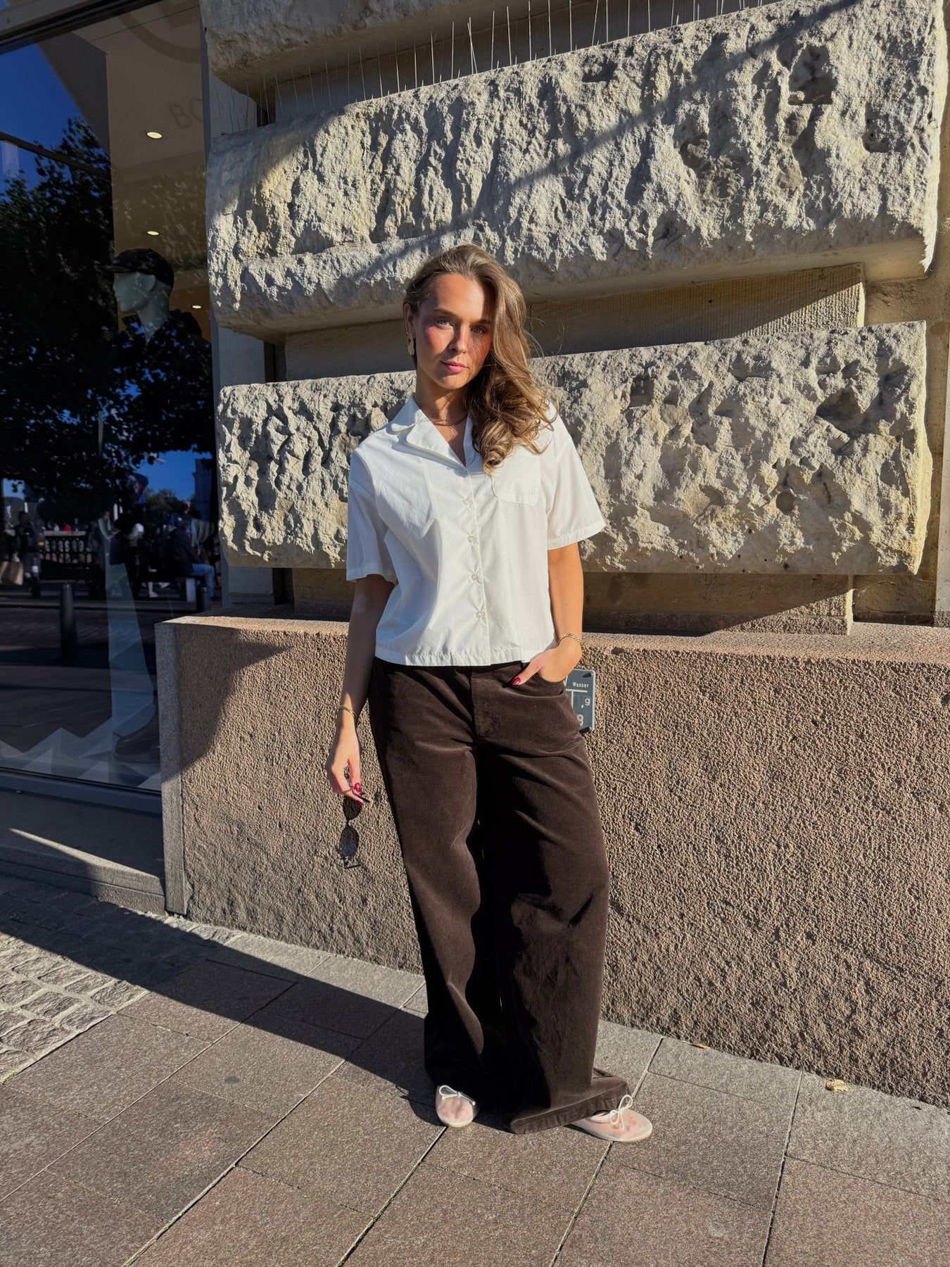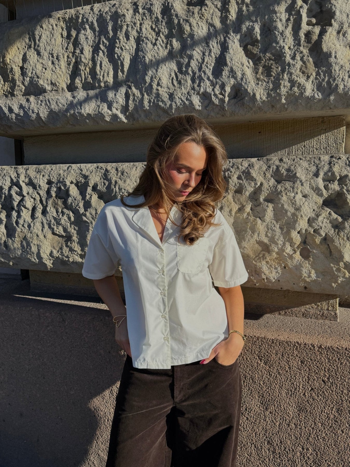 This white short-sleeved shirt is light, airy and super stylish. It has a classic and relaxed fit that makes it perfect for warm days.