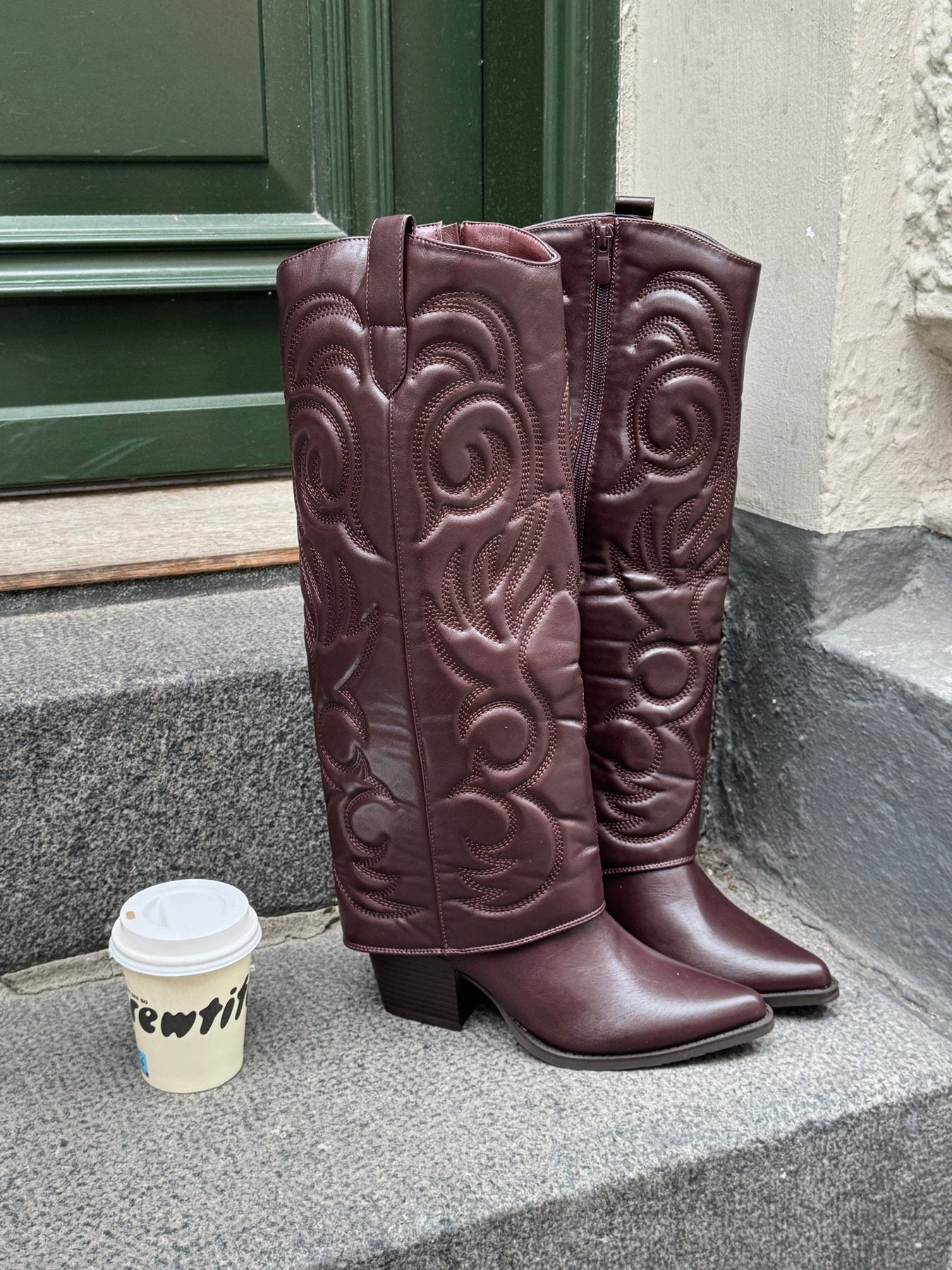 High cowboy boot with unique print - western meets elegance 🤠✨