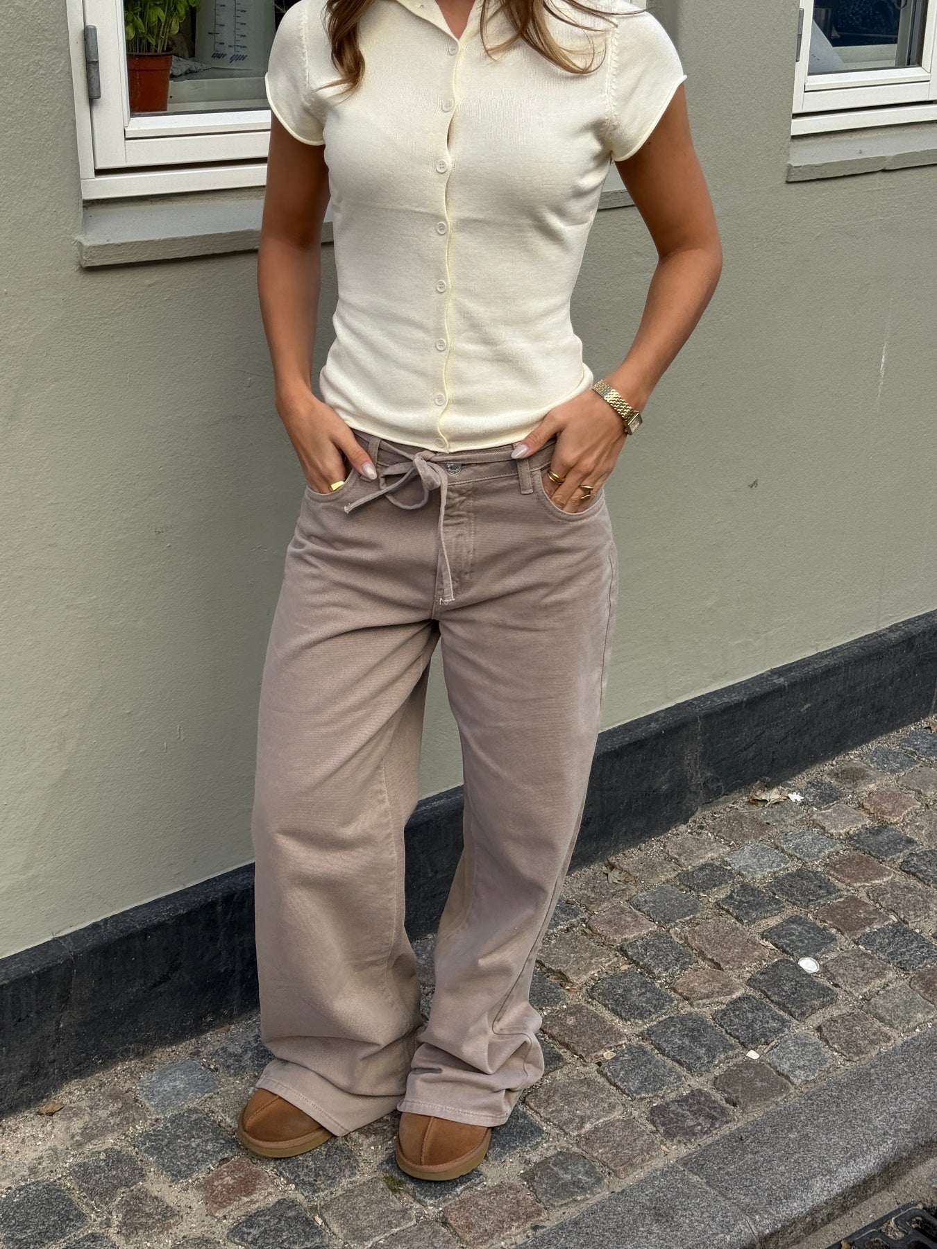 These pants strike the perfect balance between relaxed comfort and stylish design. They have a loose fit with wide legs and an adjustable drawstring waist that gives a relaxed look and adds a cool, casual detail. Perfect for both weekdays and weekends.