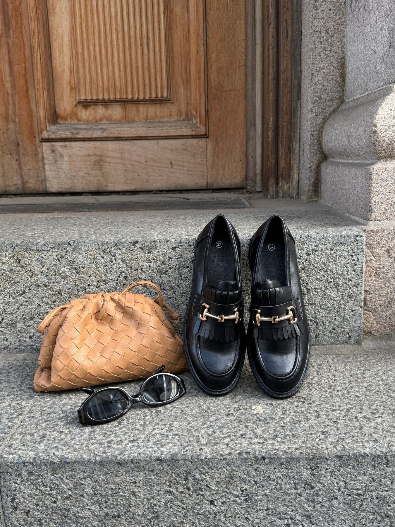A timeless shoe with a sophisticated twist. These loafers are designed with fine fringes and beautiful gold details that elevate any outfit. The elegant look combined with classic comfort makes them perfect for both the office and more formal occasions.