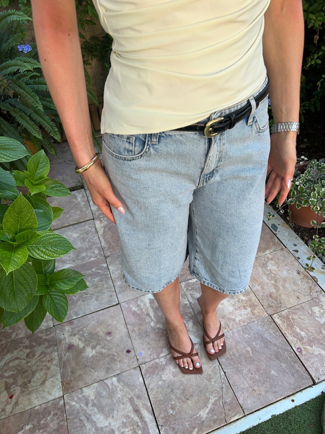 Discover the perfect mix of casual cool and timeless style with our denim Bermuda shorts in light blue wash. They are created in a lightweight, soft cotton denim for maximum comfort on hot days. The classic loose Bermuda fit goes to just above the knee for a casual yet sophisticated look.