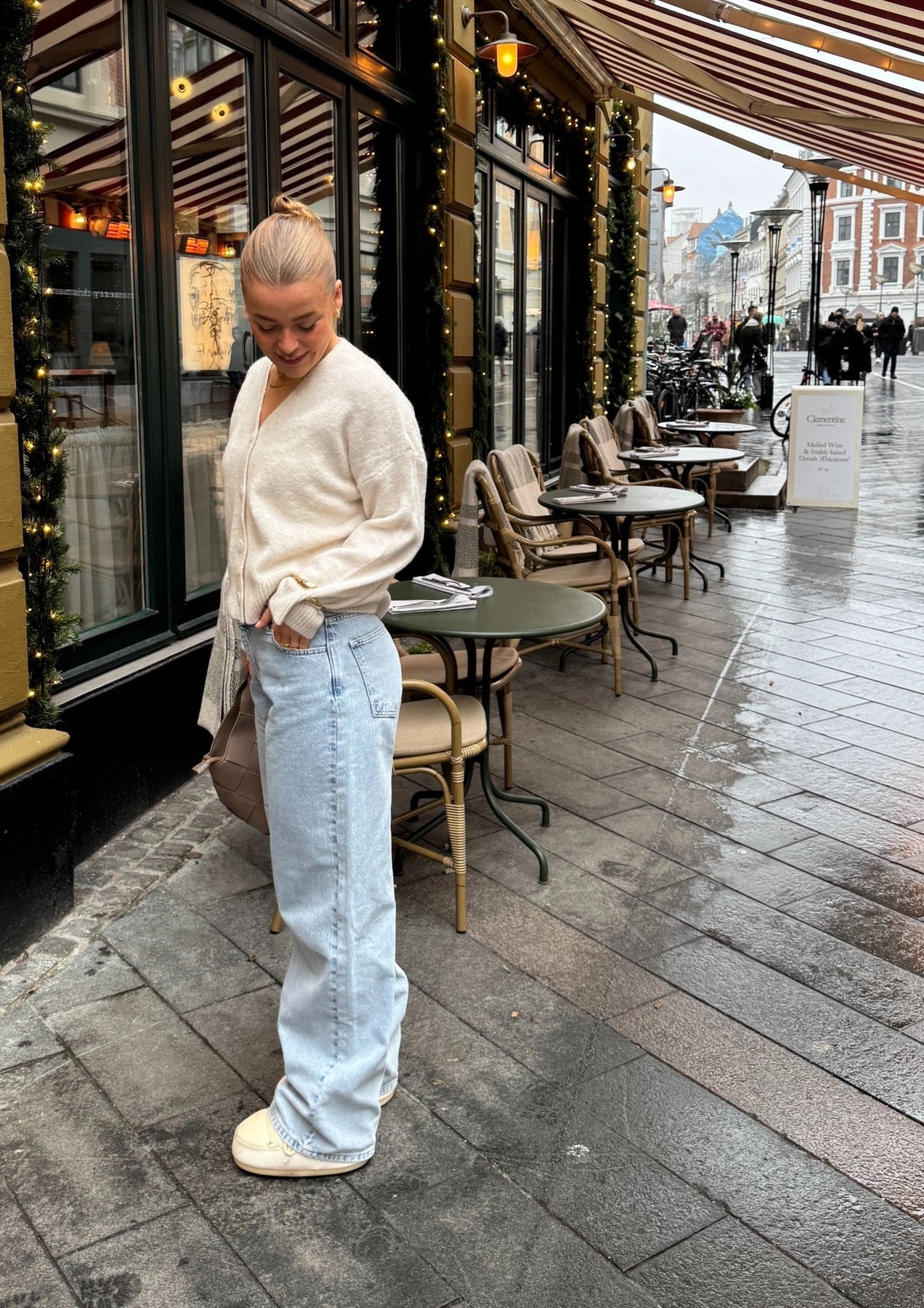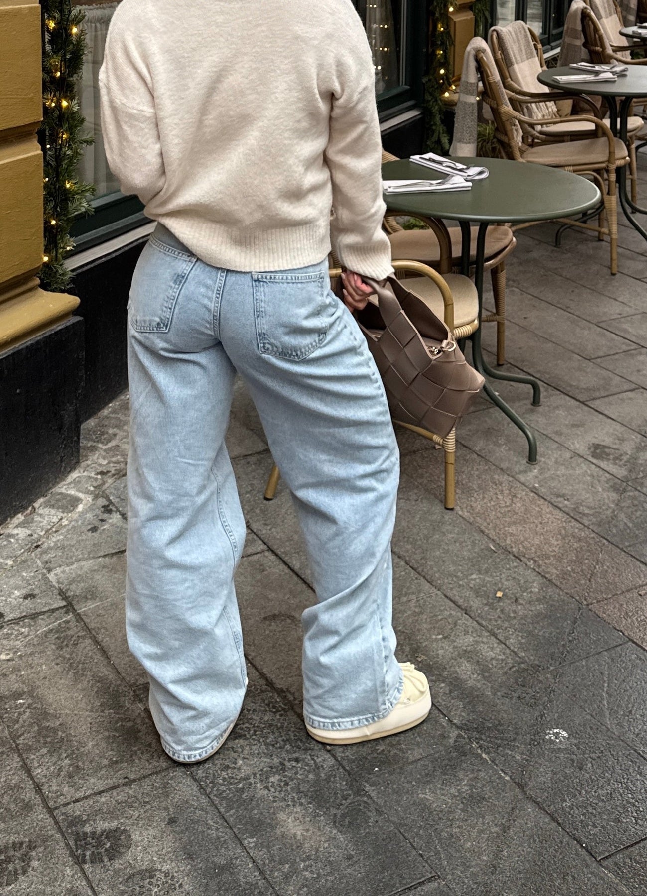 Denim Jeans i lyseblå. De perfekte jeans til hverdag og fest. De kan vælges en nummer større og fitte lidt oversize, eller vælges almindelig størrelse og være en pæn jeans.