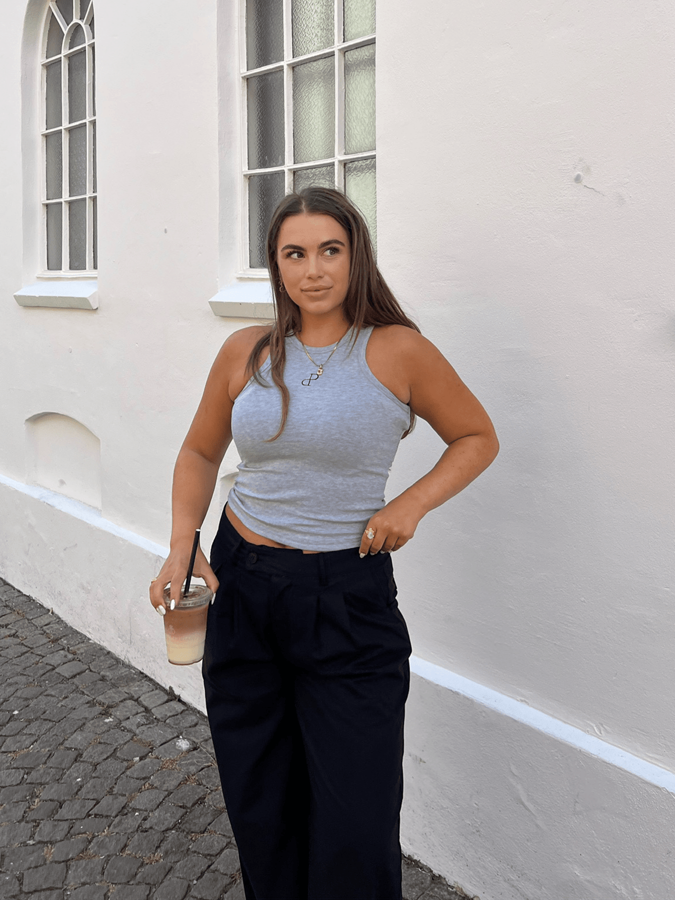 A simple and timeless top with a fitted fit and a high, rounded neck. The design emphasizes the shoulders and creates a sporty yet feminine look. The short length makes it ideal for high-waisted pants, shorts and skirts.