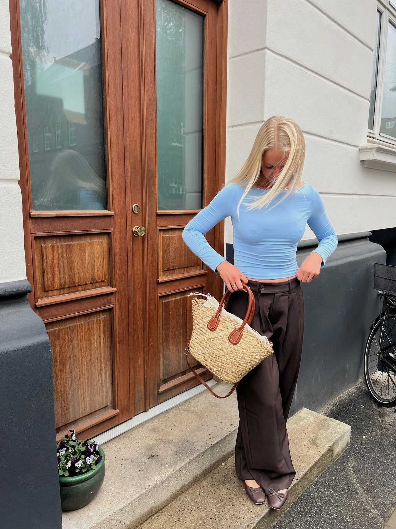 This long-sleeved top with a boatneck neckline is both simple and super stylish. It fits snugly without being tight and is made from a soft, stretchy material that makes it really comfortable to wear all day long.