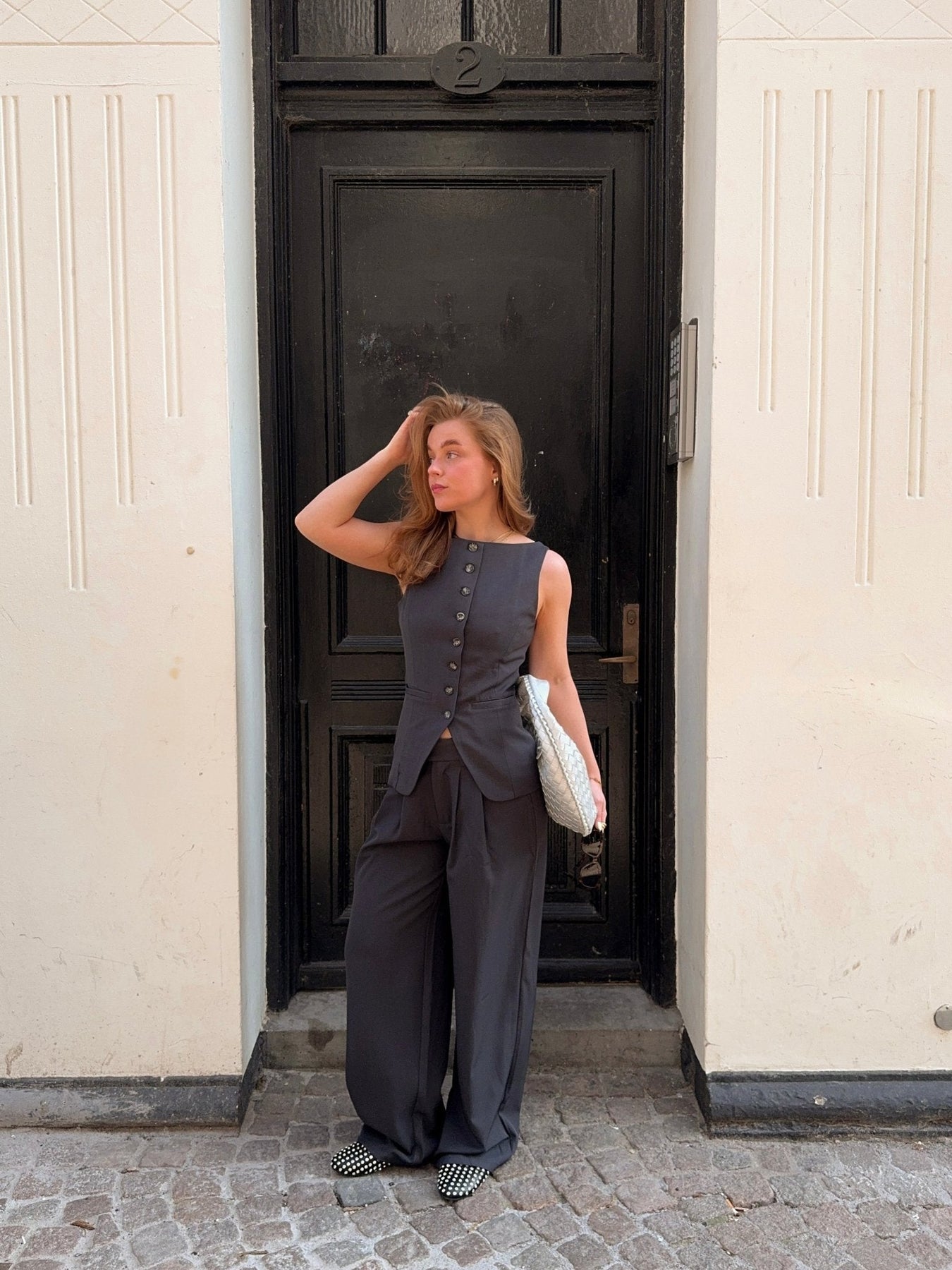 Nora Pants er den perfekte buks til både hverdag og fest. Bukserne har et loose fit og kan sidde både lavtaljet og højtaljet, alt efter hvilket look du ønsker. Bukserne har lommer i siden og en fin pyntelomme bagpå.