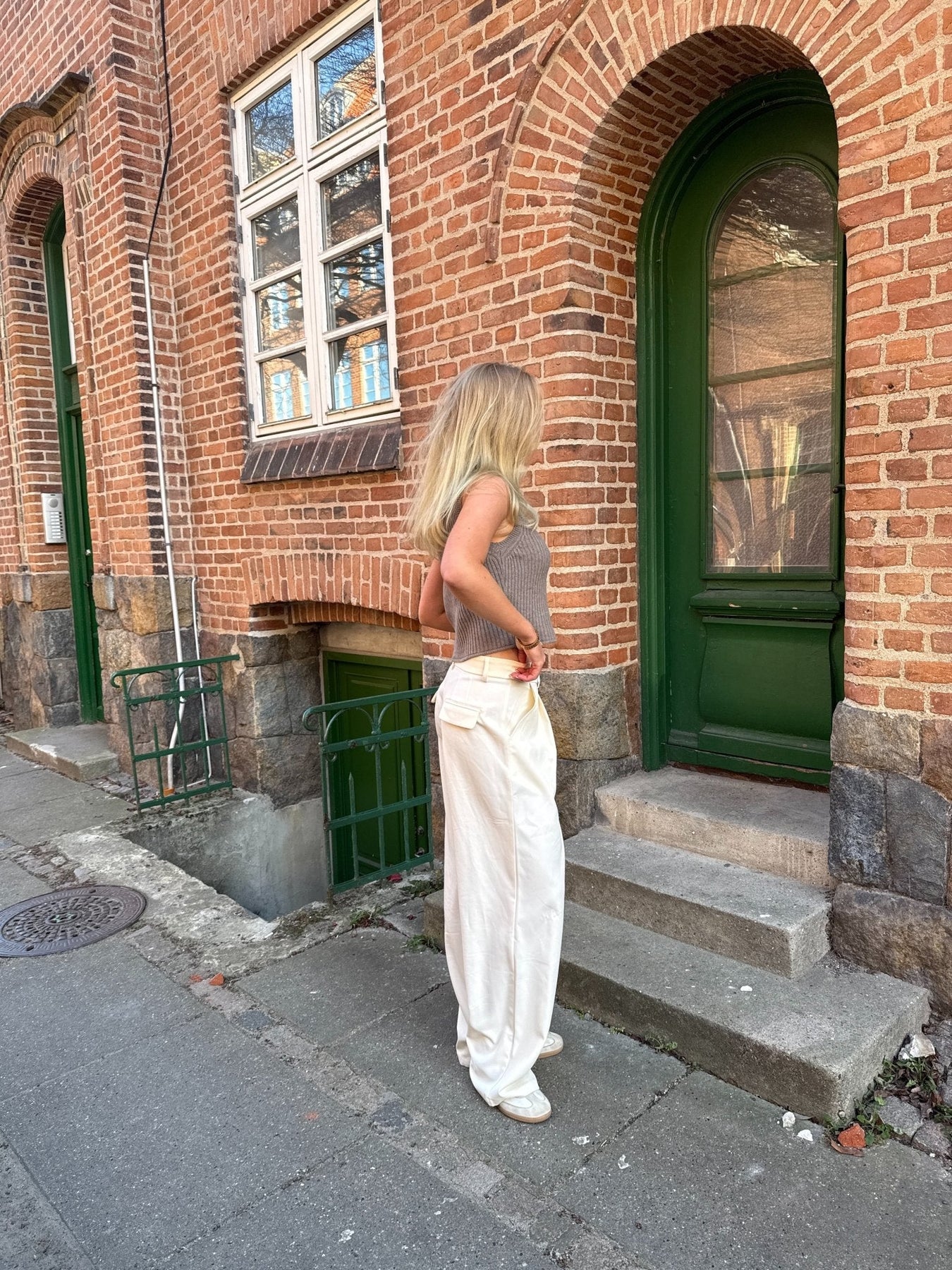 Nora Pants er den perfekte buks til både hverdag og fest. Bukserne har et loose fit og kan sidde både lavtaljet og højtaljet, alt efter hvilket look du ønsker. Bukserne har lommer i siden og en fin pyntelomme bagpå.