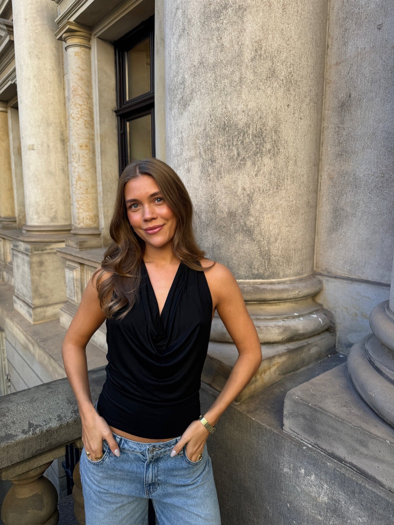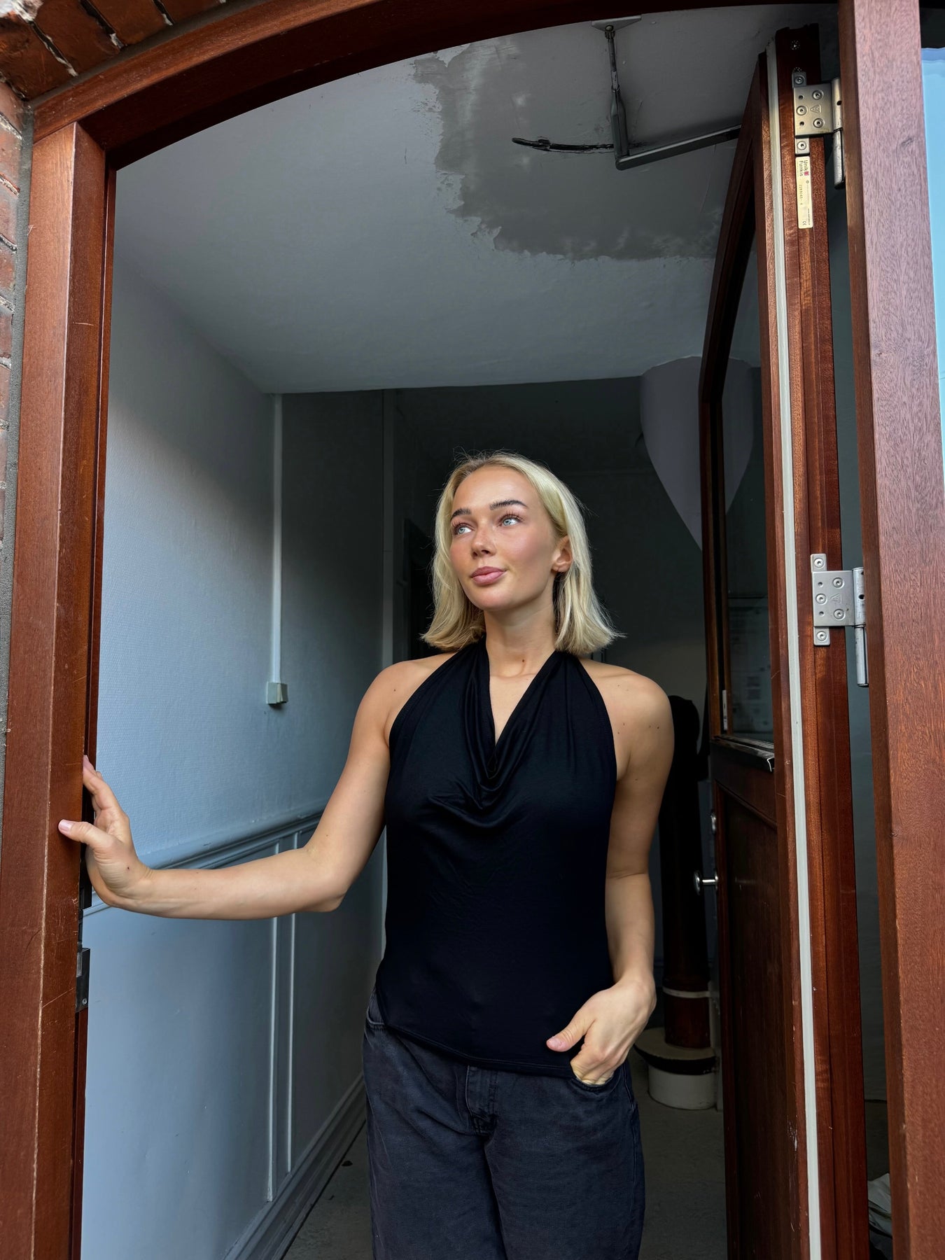 This stylish halterneck top combines a flattering front design with an elegant open back that ties at the neck for an adjustable and feminine fit. The close fit accentuates the waist, while the lightweight, soft material provides both comfort and an exclusive drape. The top is perfect for both everyday and evening wear - style it with jeans for a casual look or with a skirt for formal occasions.
