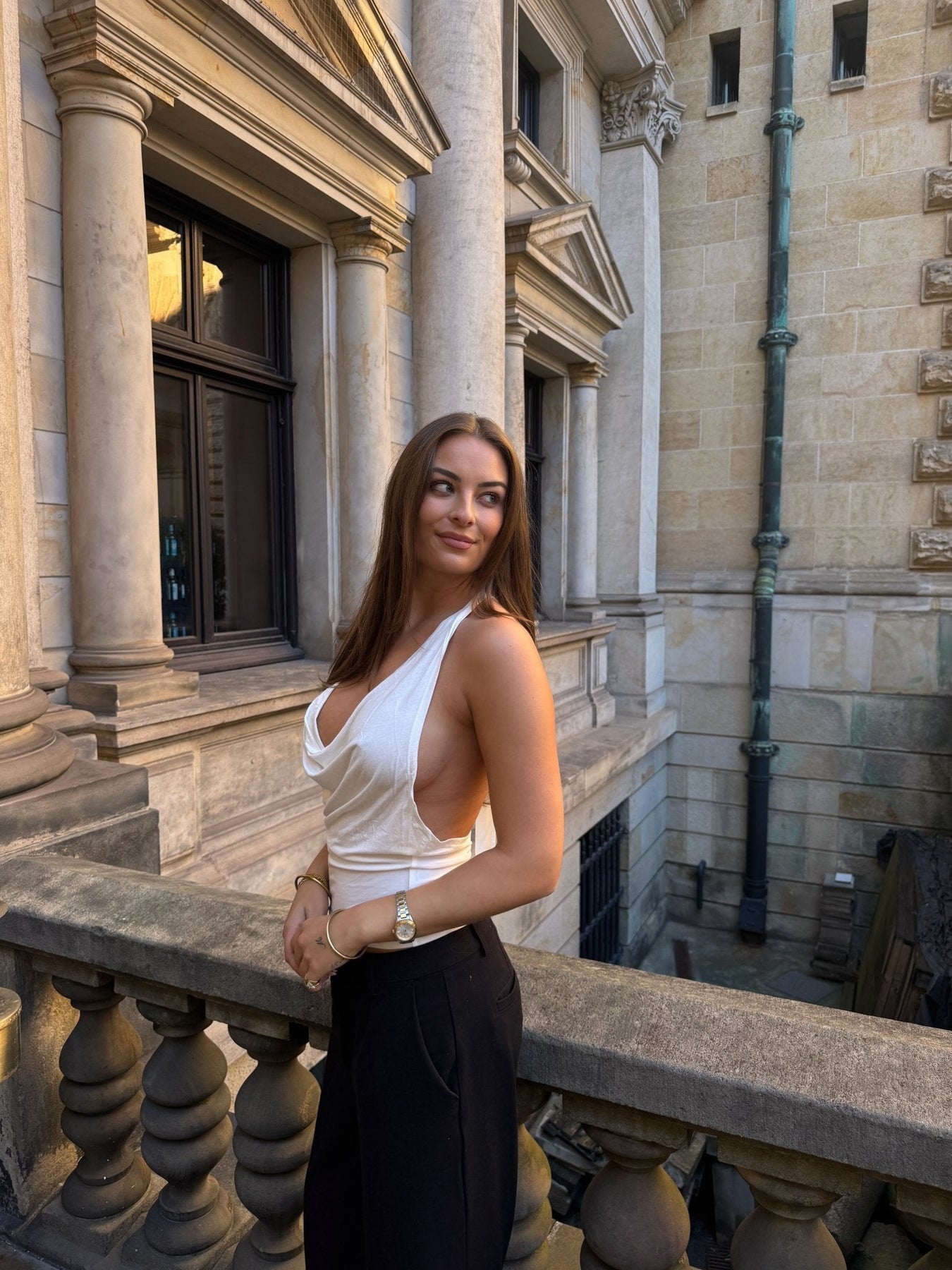 This stylish halterneck top combines a flattering front design with an elegant open back that ties at the neck for an adjustable and feminine fit. The close fit accentuates the waist, while the lightweight, soft material provides both comfort and an exclusive drape. The top is perfect for both everyday and evening wear - style it with jeans for a casual look or with a skirt for formal occasions.