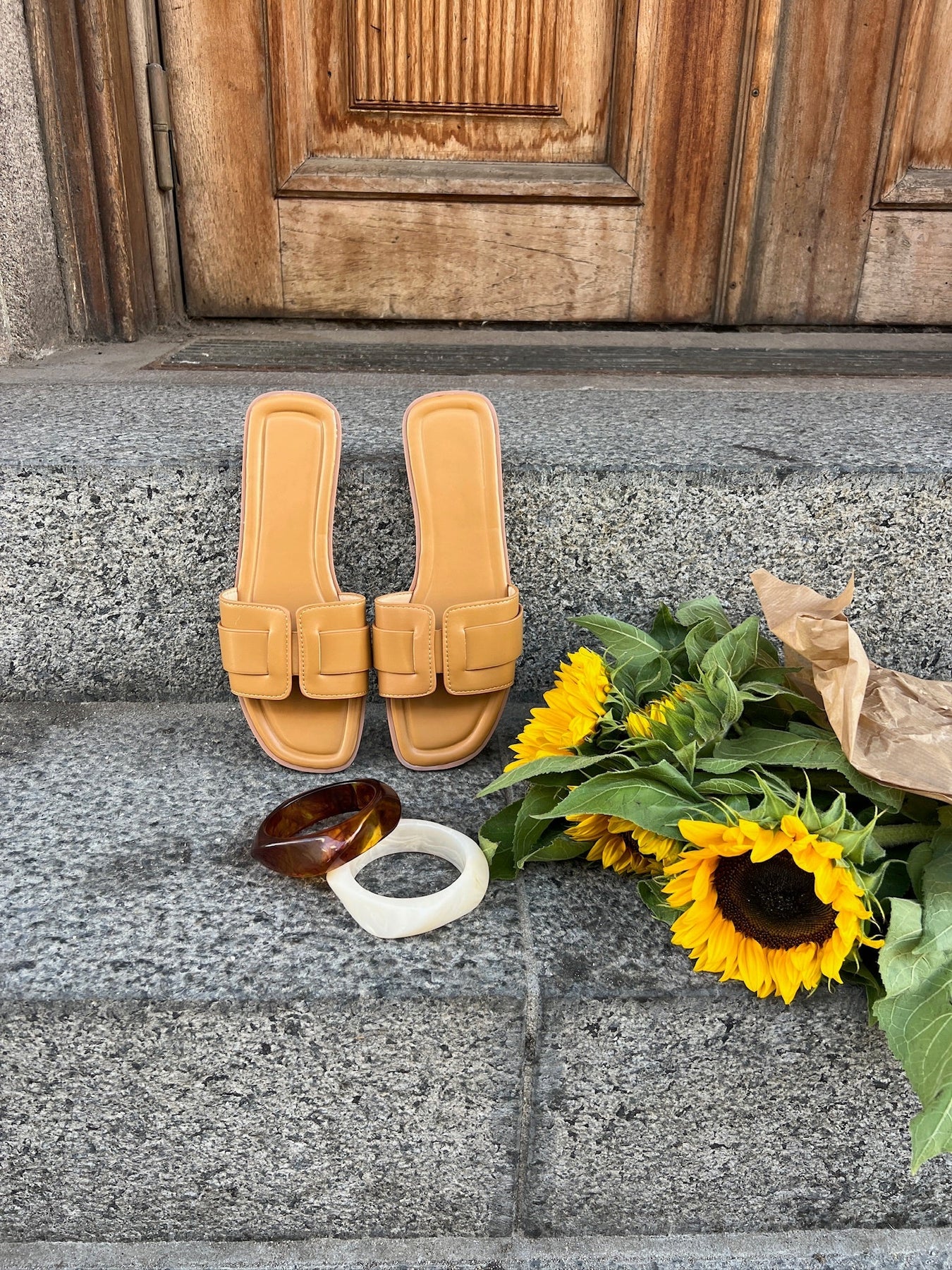 Light, elegant and irresistible. This dainty sandal in the most beautiful brown color has beautiful crossed strap details that wrap around the foot for a stylish, feminine look. Perfect for summer days, weddings or just when you want to feel extra fancy.